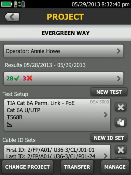 Versiv 的 ProjX? 系統可管理從設置到系統驗收過程的全部項目,確保正確完成所有的測試。輸入項目作業的測試詳情后,ProjX 會將其儲存在一個用整個團隊容易理解的名稱命名的項目文件中。更改模塊或作業時,無需重新輸入詳情。通過利用 U 盤或電子郵件分享項目文件,以支持執行相同作業的多個測試儀。易用且高效。