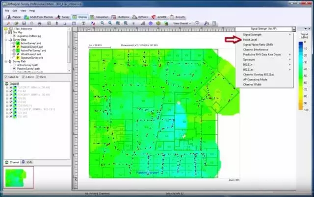 NETSCOUT AirMagnet Survey Pro 可以利用現場勘查收集回來的數據通過不同種類的熱圖(Heat Map)呈現。熱圖的主要作用是讓使用者能直觀地了解及分析現場收集的數據。現在讓我們看一下 NETSCOUT AirMagnet Survey Pro?的熱圖種類。NETSCOUT AirMagnet Survey Pro?可按照以下參數顯示相關的熱圖:信號強度、噪聲水平、信噪比、信道干擾、預測性的 PHY 數據速率、頻譜、802.11n/ 802.11ac、802.11ac 的信號重疊、AP?的操作模式和信道頻帶。